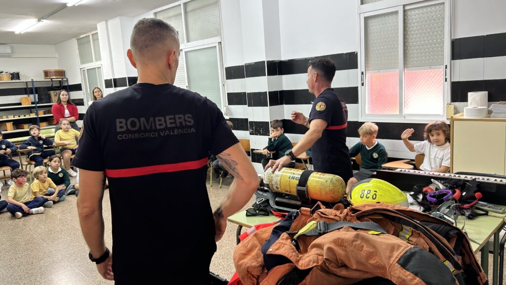 Durante la sesión, los bomberos explicaron al alumnado cómo actuar en caso de emergencia, qué medidas de prevención debemos tener en casa y en el colegio, y mostraron el equipamiento y las herramientas que utilizan en su trabajo diario: cascos, trajes ignífugos, mangueras, mascarillas y mucho más.